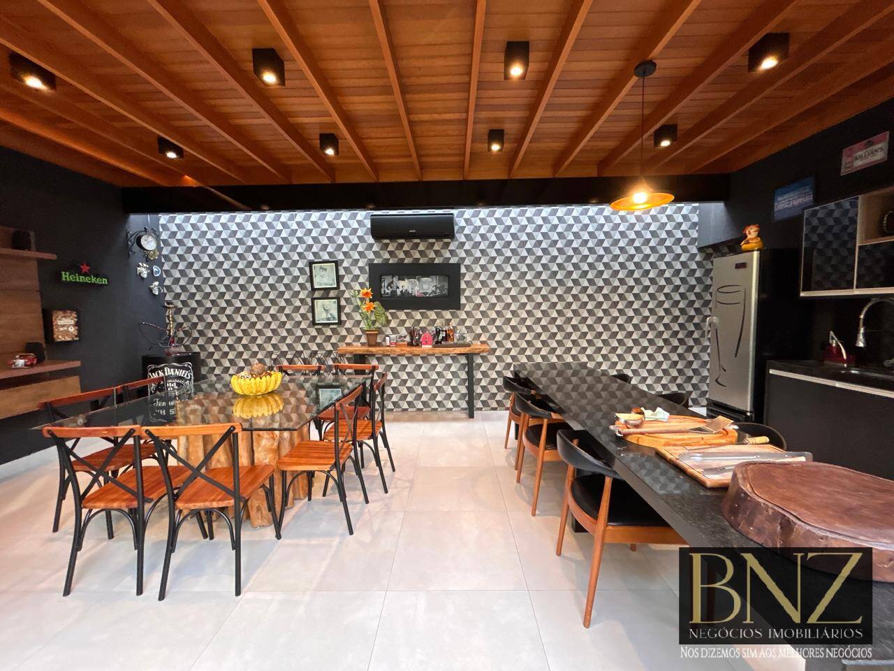 Sala de jantar com churrasqueira automatizada e 1 lavabo.